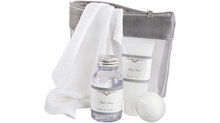 Deze badset bevat 100 g bodyscrub, 150 ml badlotion, 1 bruisbal en een handdoek.